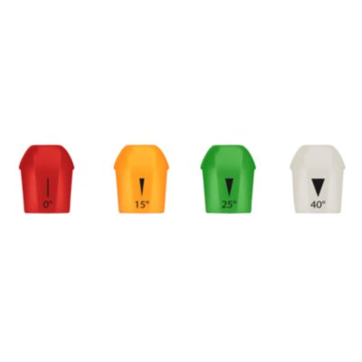 This kit comes with 0-degree, 15-degree, 25-degree, and 40-degree spray nozzles to clean a variety of surfaces.